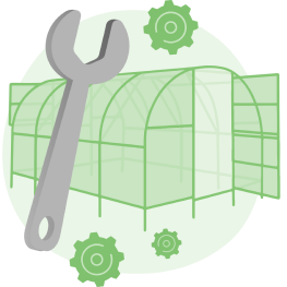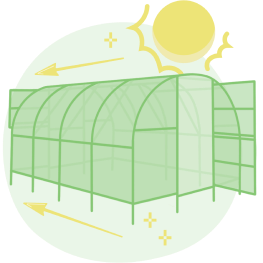 Šiltnamių gamybai naudojamos tik kokybiškos medžiagos, užtikrinančios ilgaamžiškumą. Rėmas dengiamas daugiasluoksniu polikarbonatu, kuris atsparus smūgiams, įvairioms oro sąlygoms, UV spinduliams. Šiai dangai suteikiame net 10 metų garantiją.