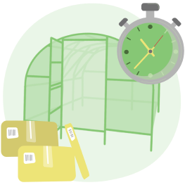 Kai internetu užsisakysite šiltnamį, Jums nereikės papildomai rūpintis transportavimu. O taip pat neteks ir ilgai laukti! Vos per 1-3 d.d. šiltnamį atvešime tiesiai į Jums reikiamą vietą! Visos šiltnamio dalys bus tvarkingai surinktos ir supakuotos, tad jei įsigysite ne sezono metu, galėsite dėžes patogiai laikyti sandėliuke ar kitoje vietoje.